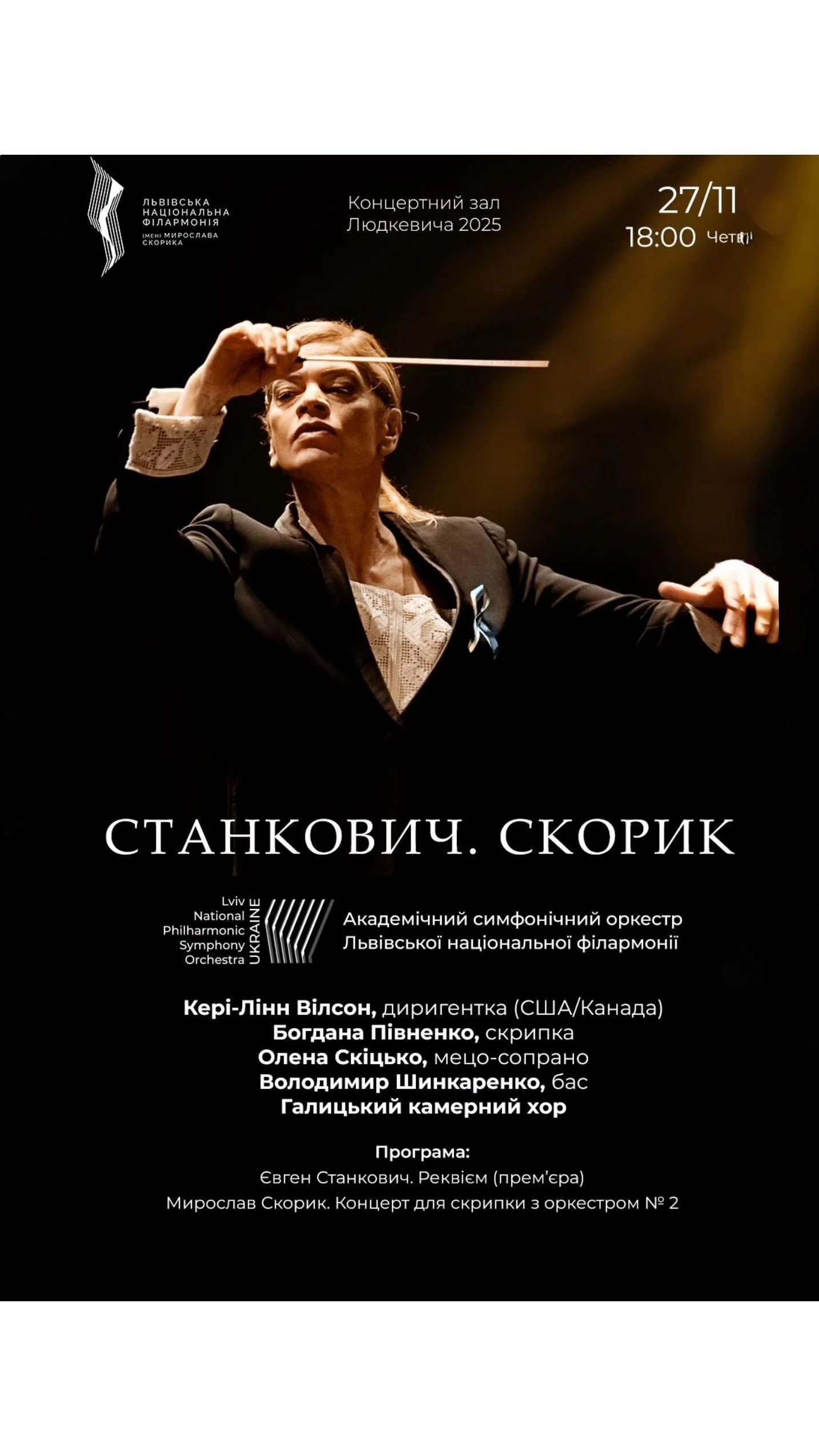 Keri-Lynn Wilson is the founding conductor and music director of the Ukrainian Freedom Orchestra. The ensemble was created in 2022 in the immediate aftermath of Russia’s full-scale invasion as a bold initiative to defend Ukraine’s cultural legacy as the country fights for its freedom. It brings together leading Ukrainian musicians from inside and outside the country and is a collaboration between the Metropolitan Opera, the Polish National Opera and The Ukrainian Ministry of Culture. The orchestra’s honorary patron is Ukraine’s First Lady, Olena Zelenska.